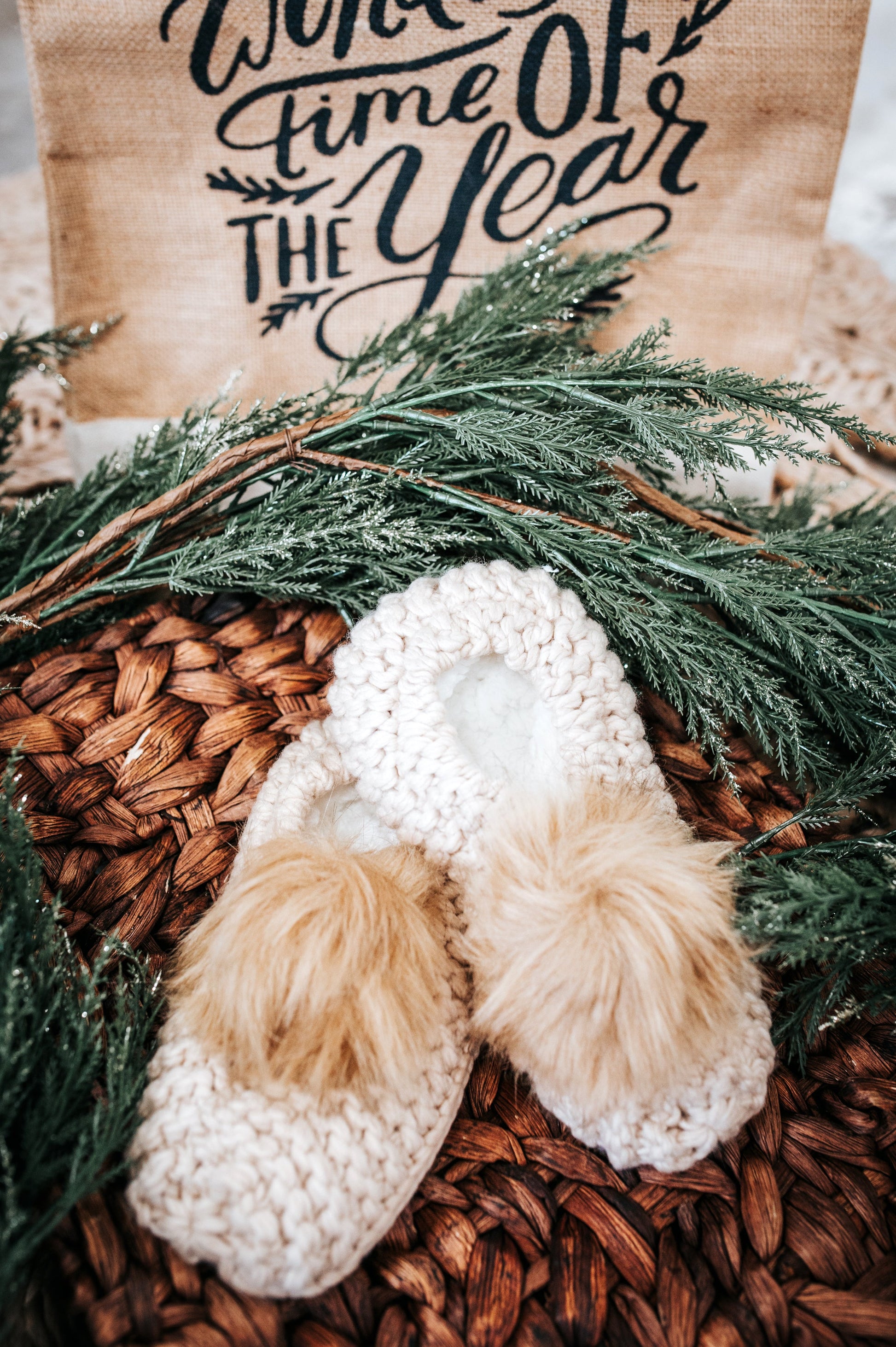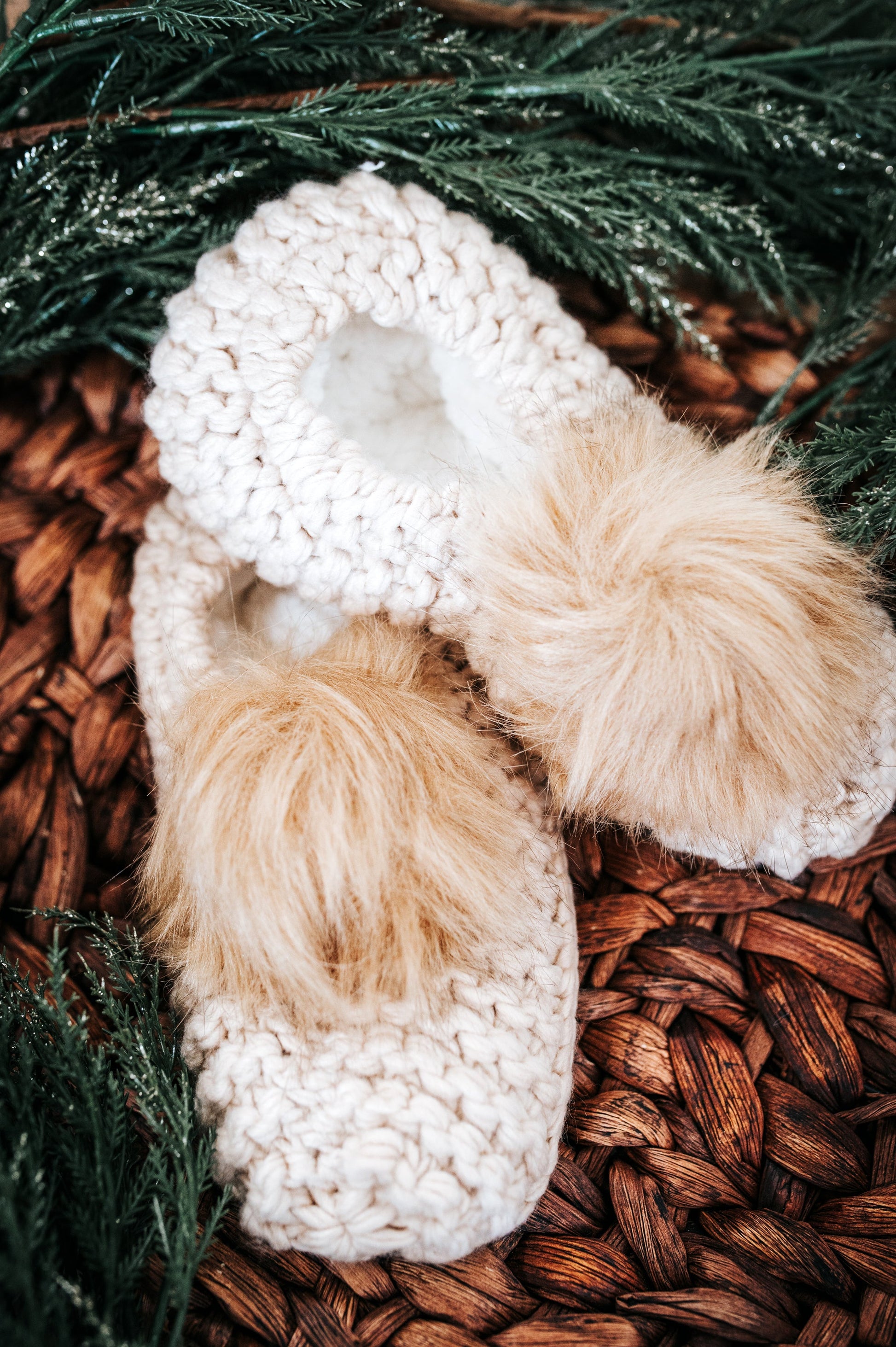11.24 Knitted Slippers With Pompom Detail In Natural 11.24
