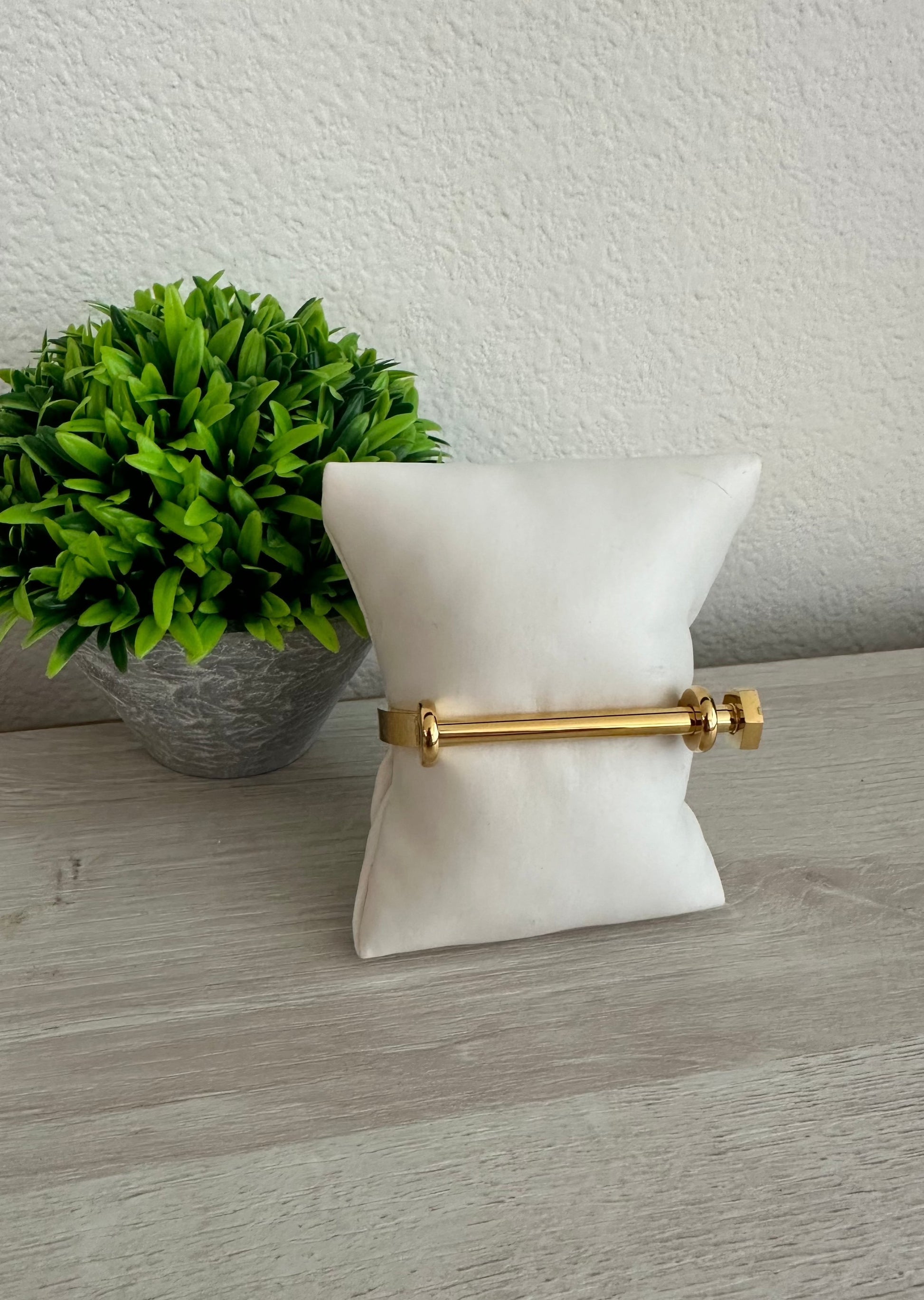 Step up your style with this Bar Closure Bracelet, featuring a sleek and modern design that exudes contemporary elegance. The bracelet showcases a minimalist bar closure, adding a unique and sophisticated touch to the overall look. Crafted with attention to detail, this bracelet offers a seamless blend of form and function, ensuring both style and comfort. Whether worn solo for a refined look or stacked with other bracelets for a layered effect, the Bar Closure Bracelet is a versatile accessory that complements any outfit with its understated charm.