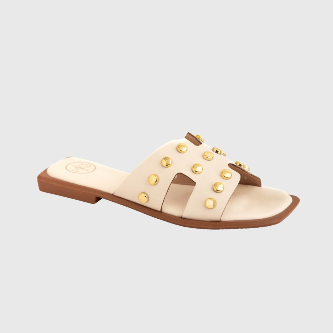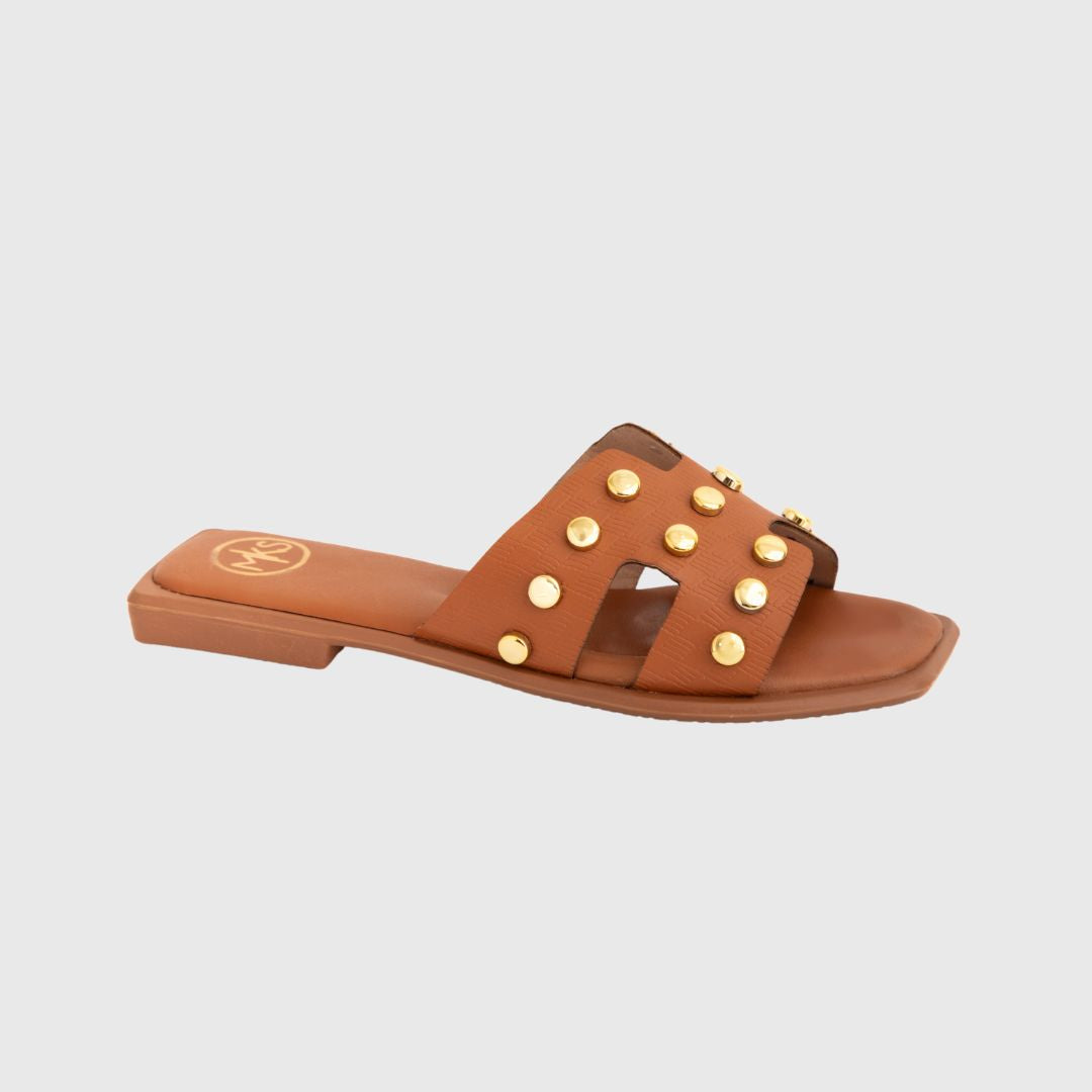 Step into style with our exquisite Faux Leather Sandals, designed to elevate your wardrobe effortlessly. The elegant gold studded straps add a touch of sophistication, making these sandals perfect for both casual outings and dressier occasions. Crafted for comfort and durability, they promise longevity while ensuring you make a bold fashion statement wherever you go. Don't miss out on the perfect blend of versatility and chic design for your footwear collection.