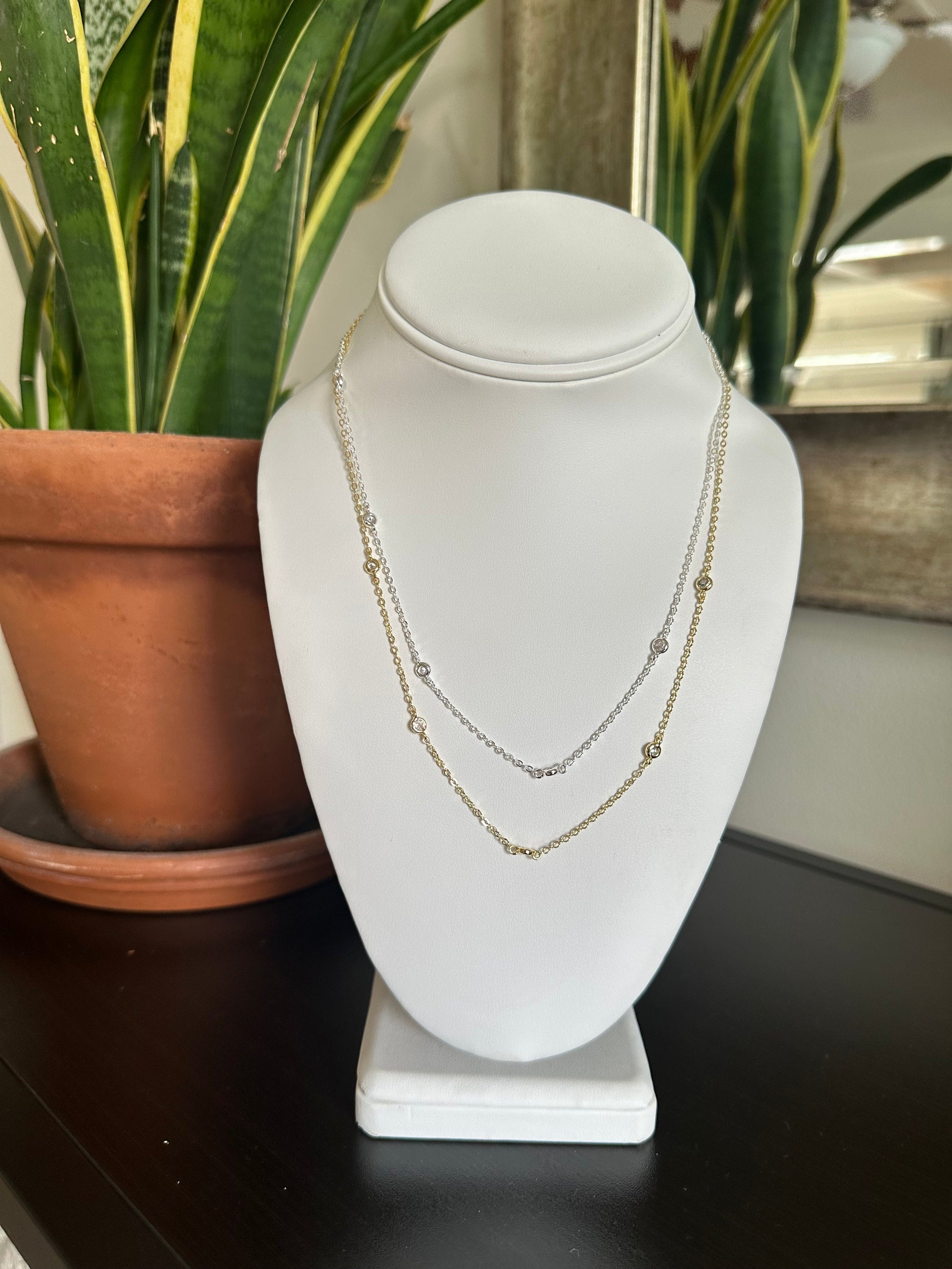 18K gold filled over 925 sterling silver pendant with CZ station necklace
