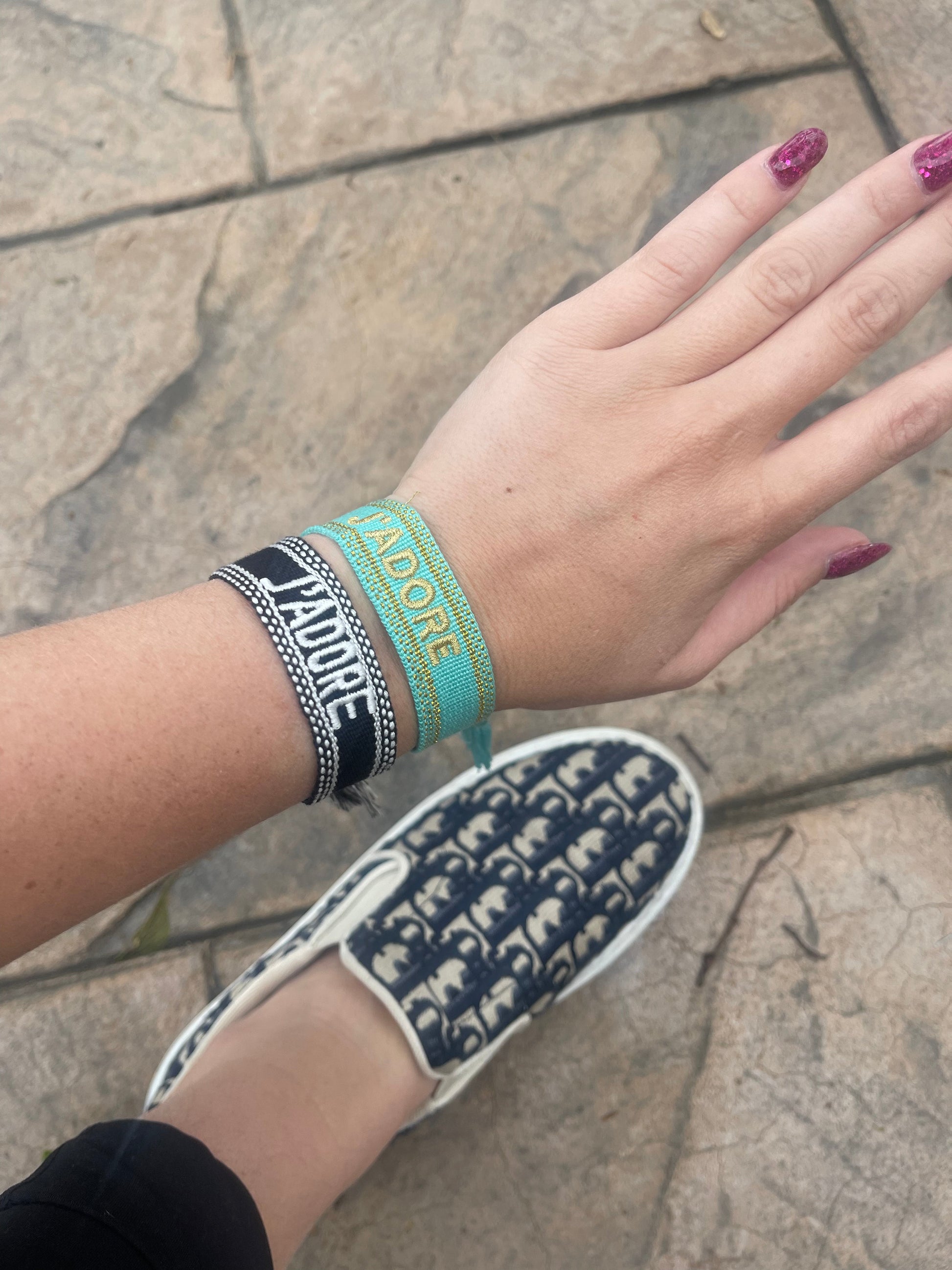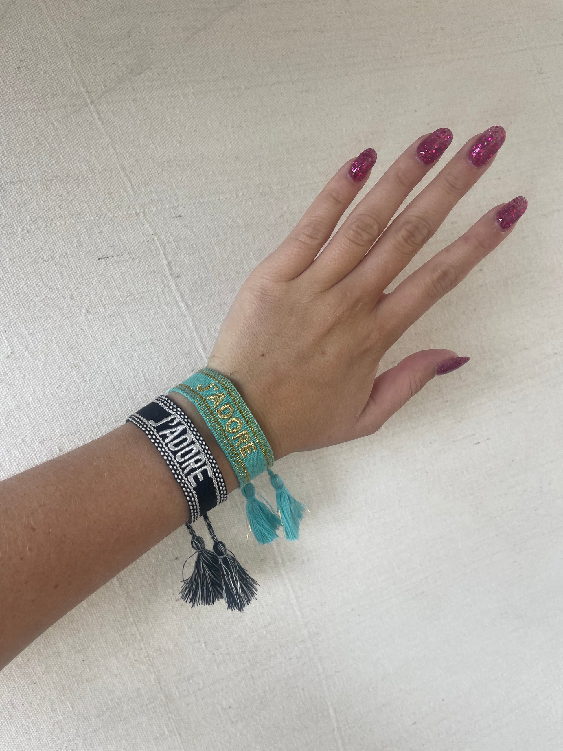 Introducing our hottest trending woven J'Adore bracelets with adjustable tassel tie, the ultimate accessory to elevate your style and express your unique personality. These bracelets feature intricate woven patterns that add a touch of bohemian chic to any outfit, while the adjustable tassel tie allows for a customized fit that's perfect for everyone.
