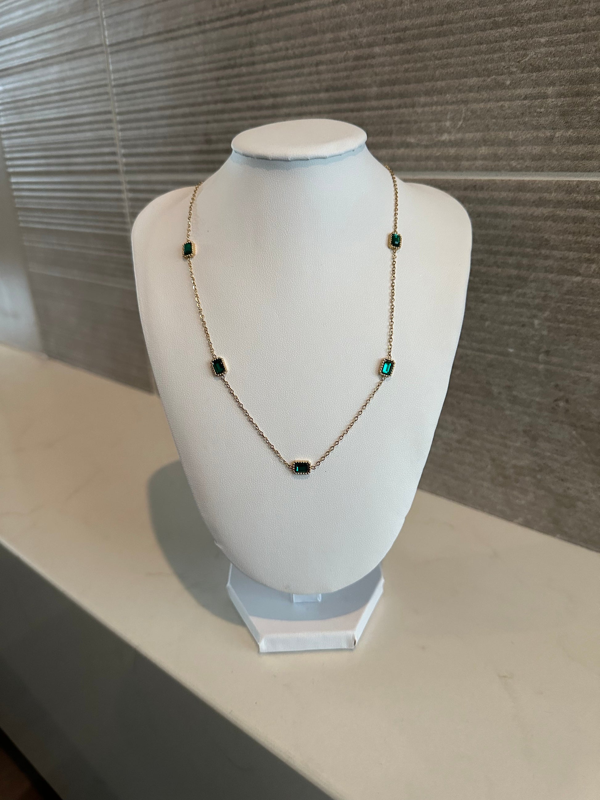 The vibrant green hue of the emerald adds a pop of color and sophistication to any ensemble, making this necklace a standout accessory for both casual and formal occasions. Whether worn alone to make a statement or paired with other gold accessories for a coordinated look, our Emerald 18k Gold Plated Necklace is sure to become a cherished piece in your jewelry collection.