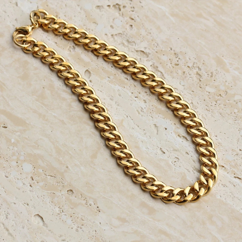 Introducing our Miami Cuban Chain 18k Gold Plate Necklace, a bold and luxurious accessory that exudes timeless style and sophistication. Crafted with meticulous attention to detail, this necklace features a classic Miami Cuban link design plated in radiant 18k gold, offering a look of opulence and refinement!