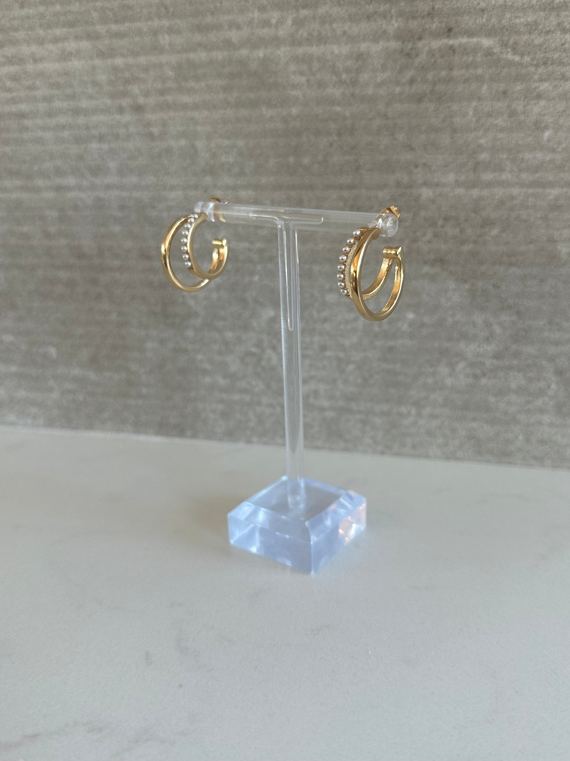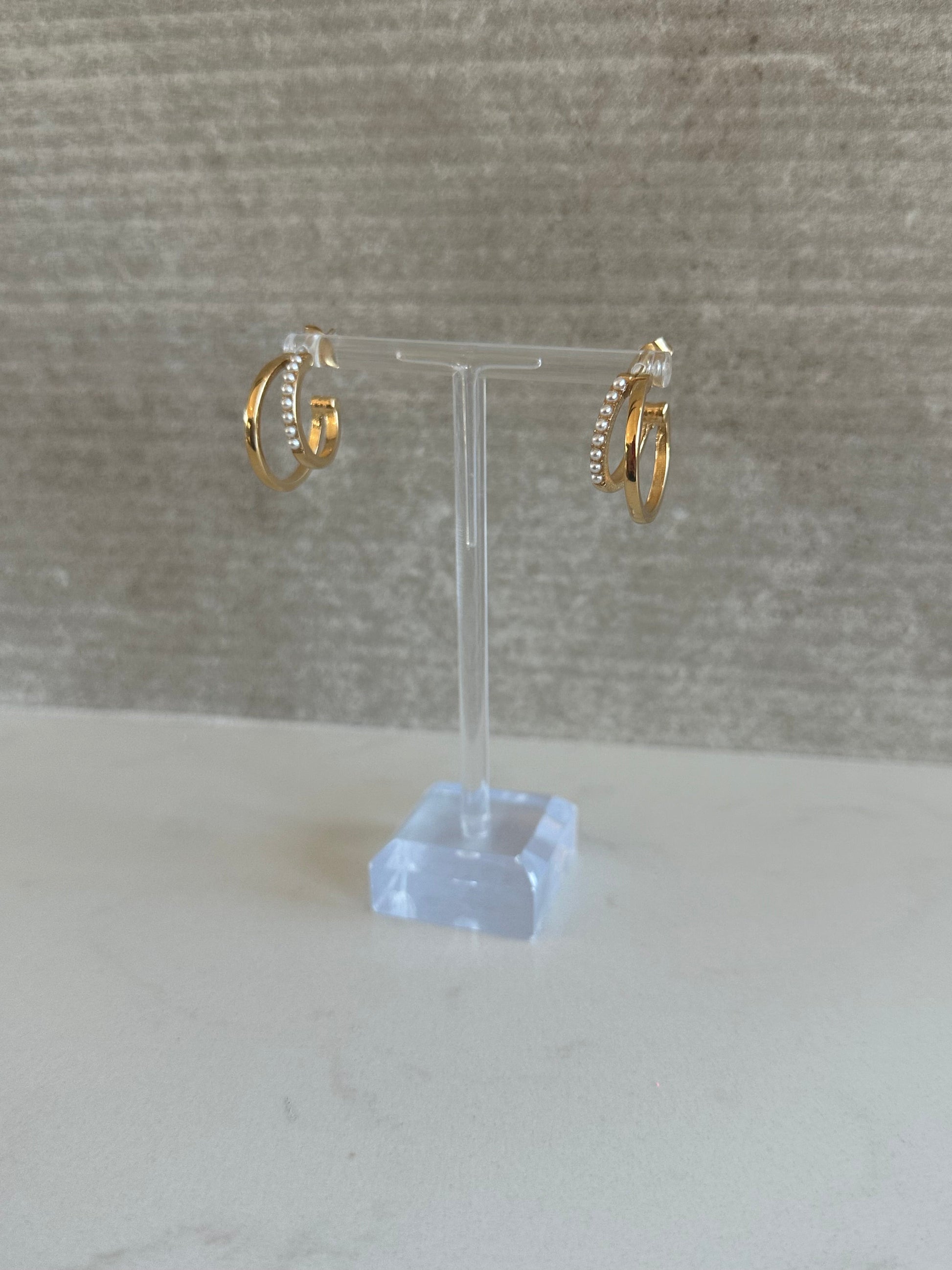 Elevate your look with these CZ 18k Gold Plated Double Hoops, a dazzling pair of earrings that combines classic elegance with contemporary sparkle. Each hoop features two layers: an outer hoop plated in luxurious 18k gold and an inner hoop adorned with shimmering cubic zirconia stones. The contrast between the sleek gold plating and the sparkling CZ stones creates a striking and eye-catching design.