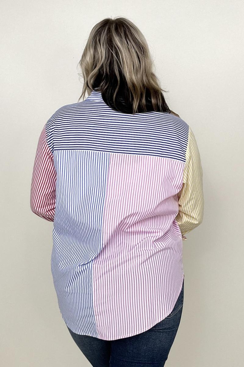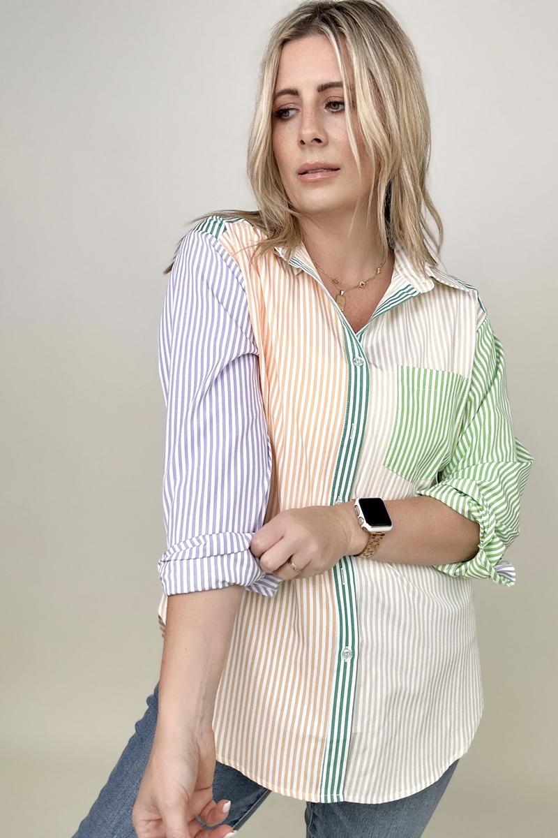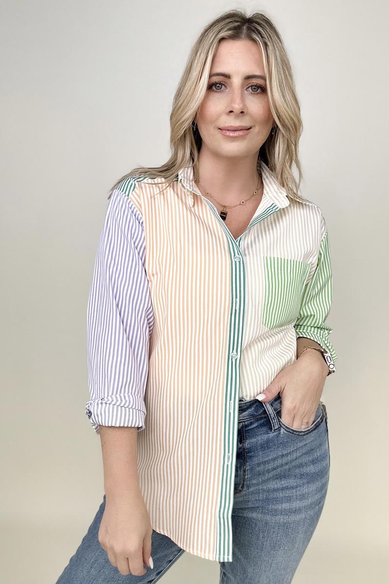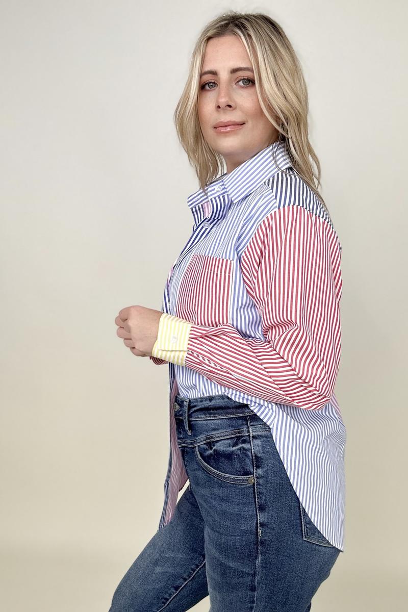 Davi & Dani Multicolor Mixed Stripe Button Front Top