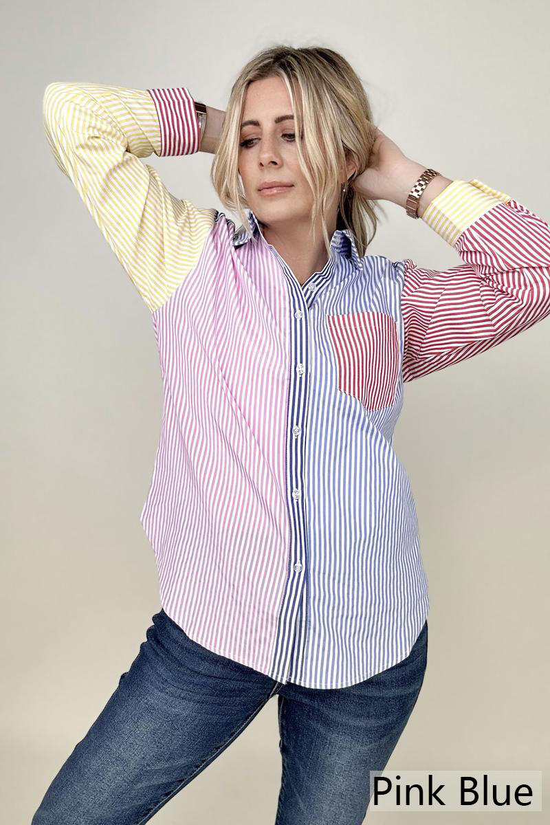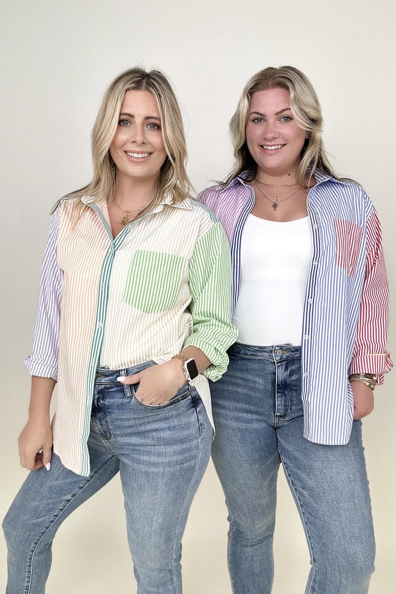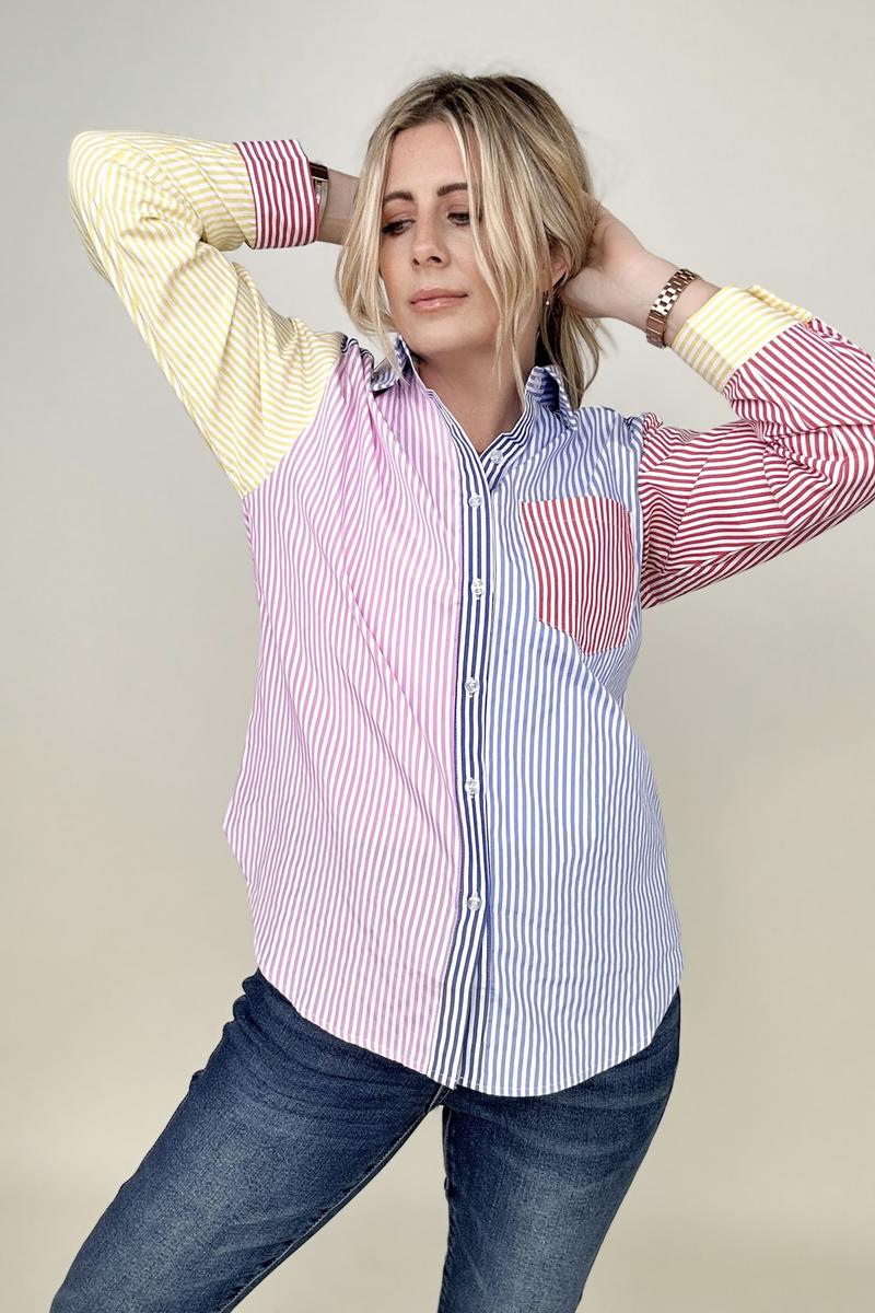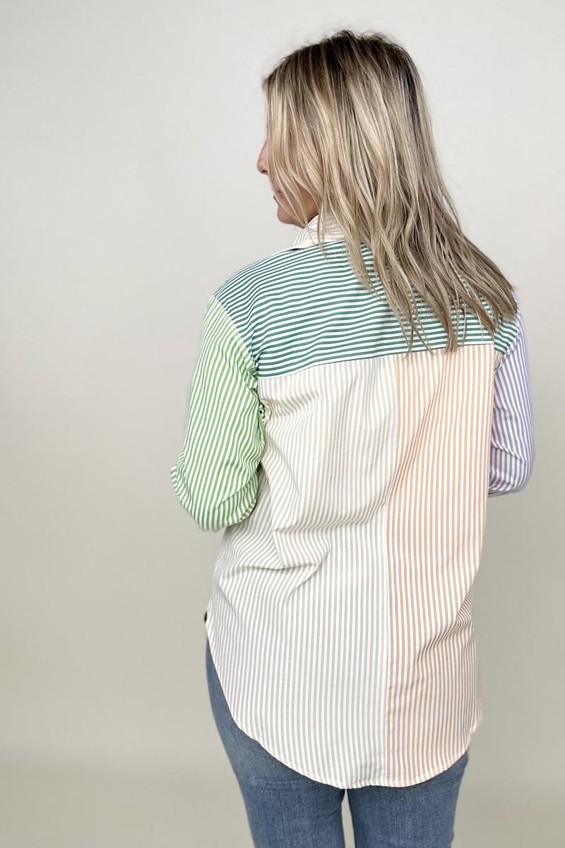 Davi & Dani Multicolor Mixed Stripe Button Front Top
