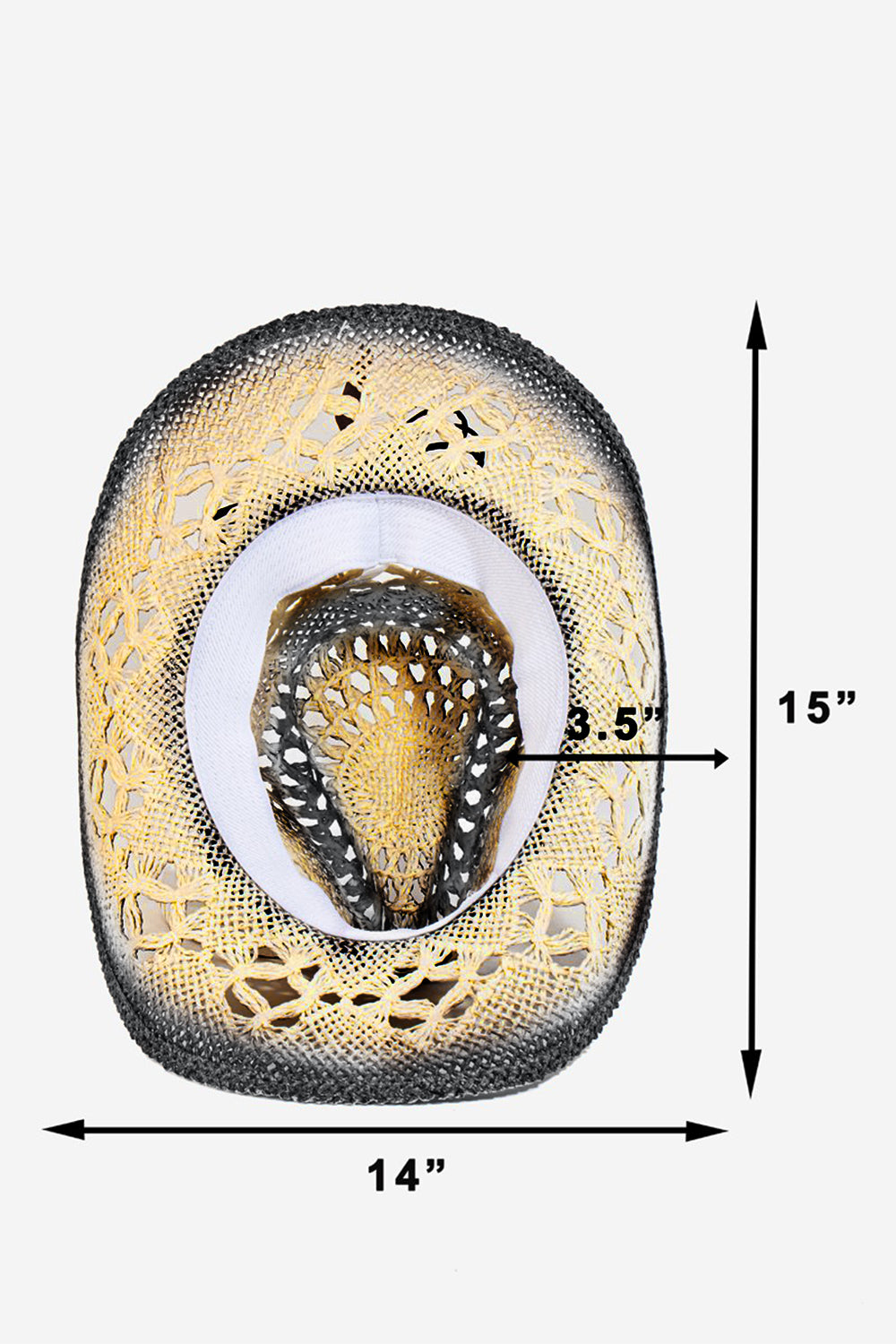 This cutout rope strap wide brim hat is a stylish and unique accessory for sunny days. The cutout design adds a trendy touch to the classic wide brim hat style. The rope strap detail gives it a beachy and laid-back vibe, perfect for summer outings. Stay cool and fashionable while shielding yourself from the sun with this standout cutout rope strap wide brim hat.