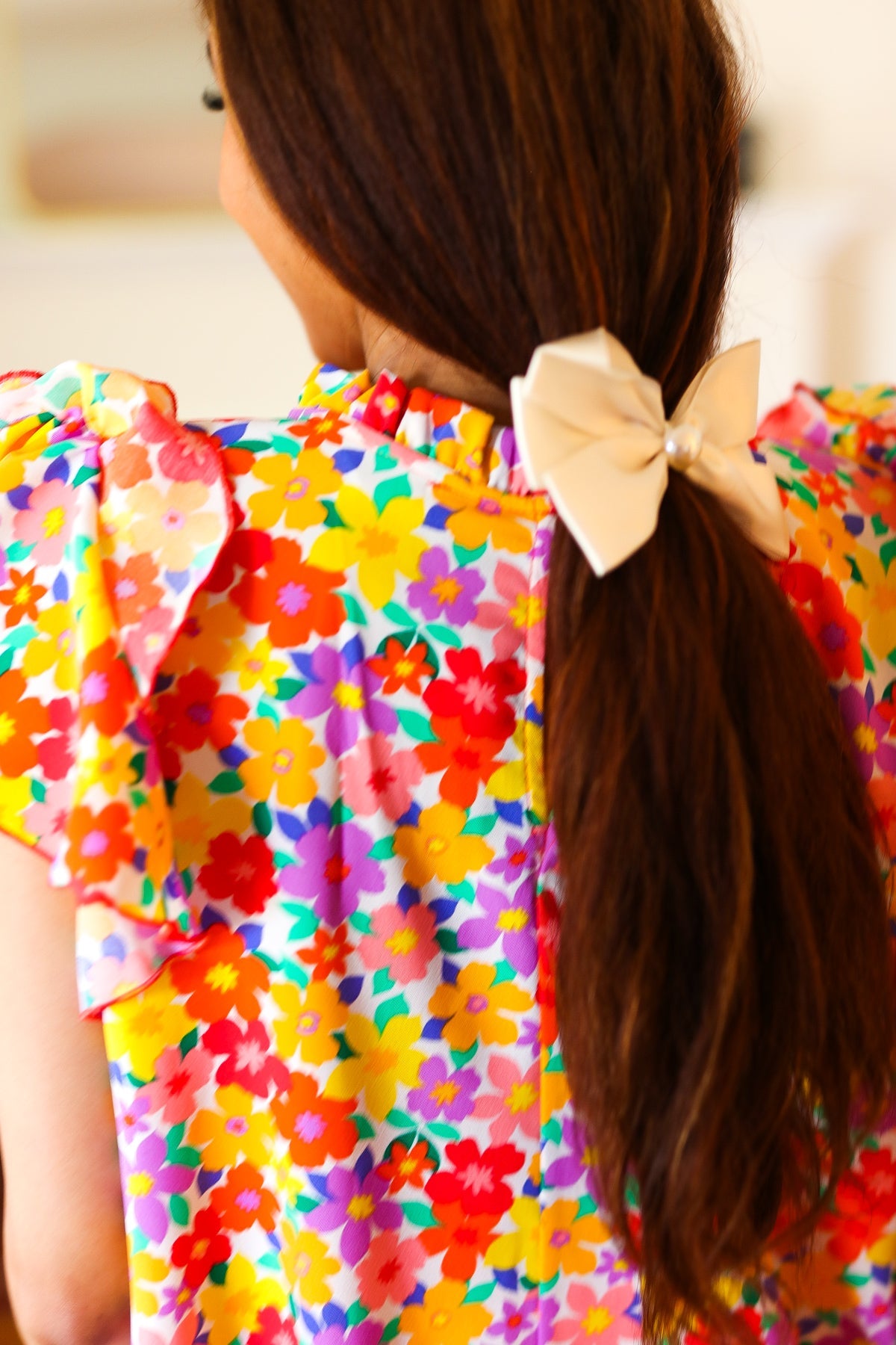 Ivory Satin Pearl Detail Coquette Bow