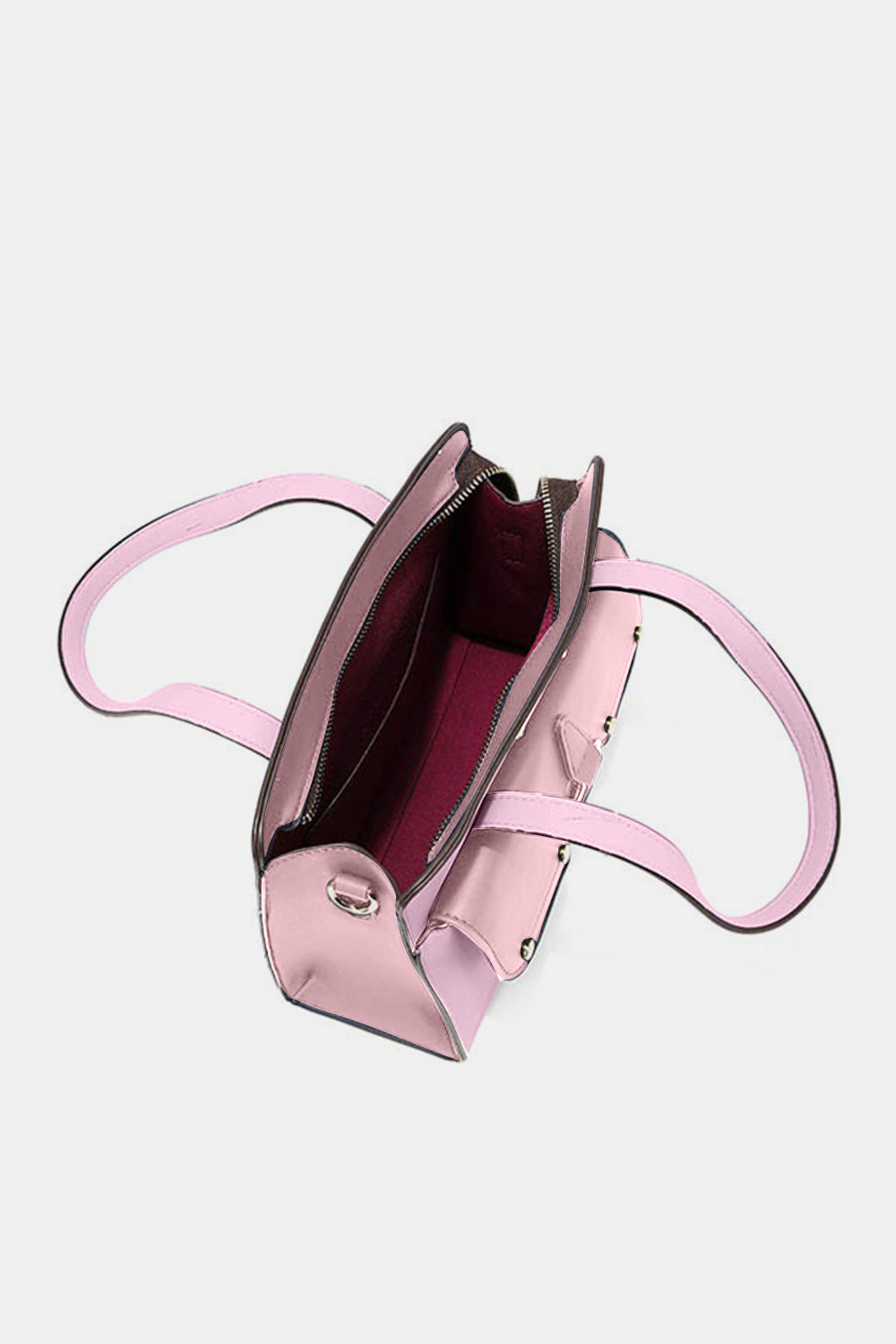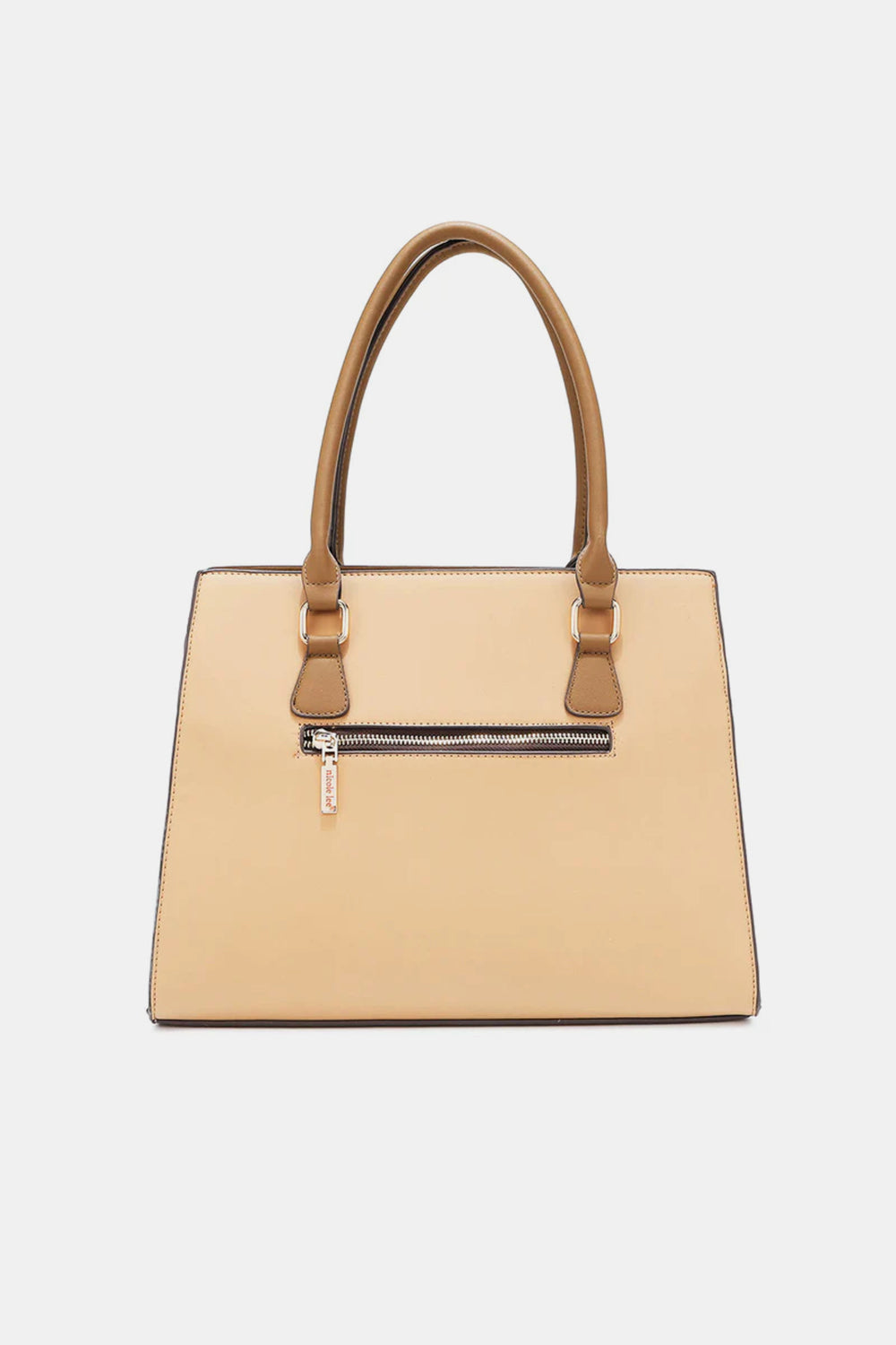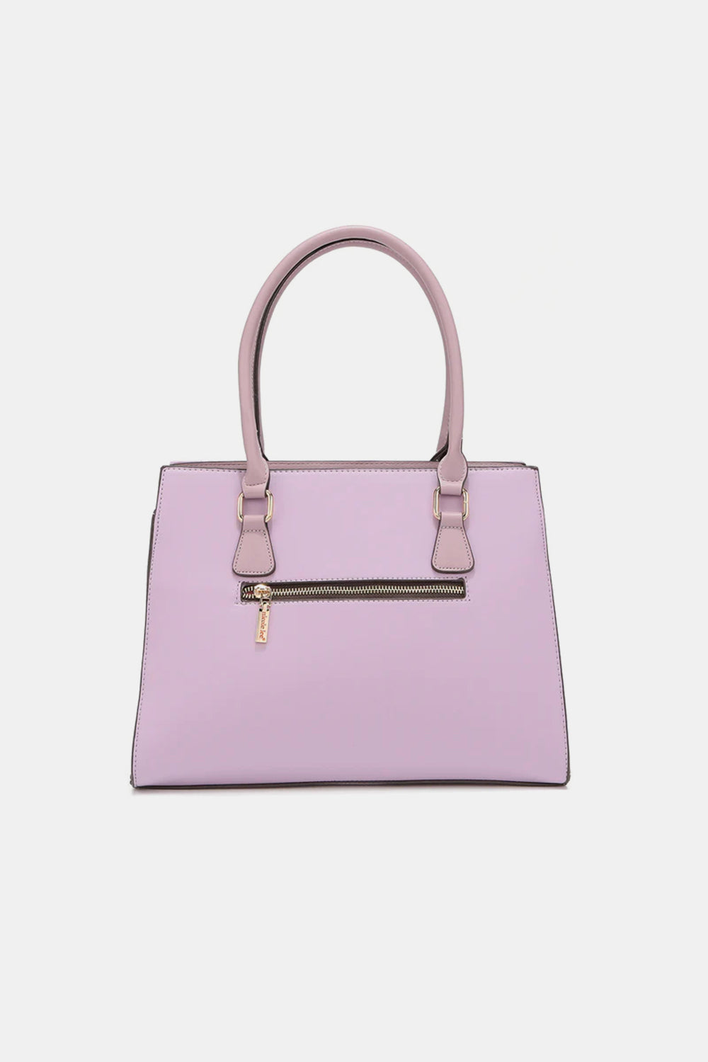 The 3 Piece Handbag Set includes a classic Satchel, a versatile Crossbody, and a stylish Pouch. The Satchel offers a timeless and elegant design, perfect for everyday use. The Crossbody provides convenience and a hands-free carrying option for busy days. The Pouch is a stylish accessory for storing small essentials or using it as a chic clutch. Mix and match these bags to complement various outfits and occasions. Stay organized and fashionable with this essential 3 Piece Handbag Set!