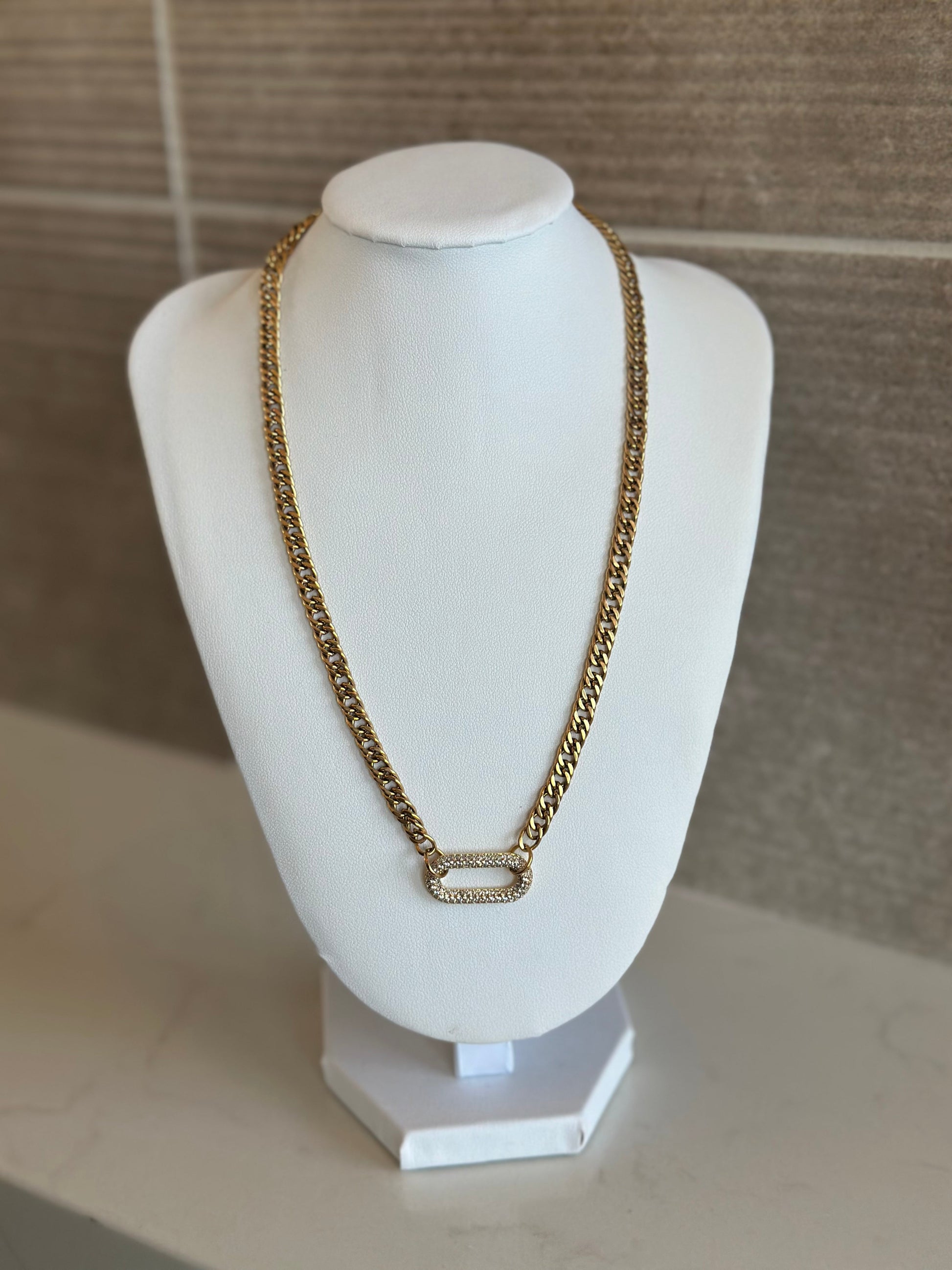 Elevate your ensemble with the opulent beauty of our Oval Link CZ Necklace. Whether worn alone to make a bold statement or layered with other necklaces for a more personalized look, this exquisite piece is sure to add a touch of glamour to any outfit.