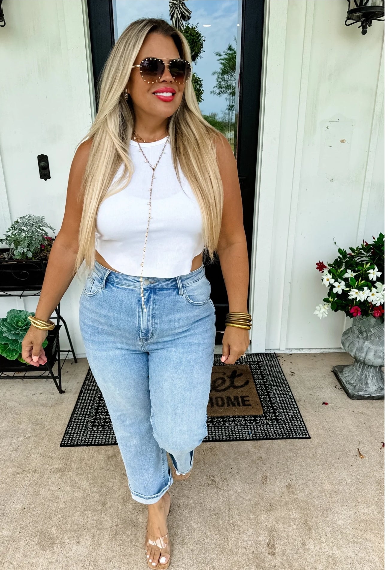 The cutest most form flattering tank! Features a high/low front/back with curved sides that form fitting, small waist appearance!