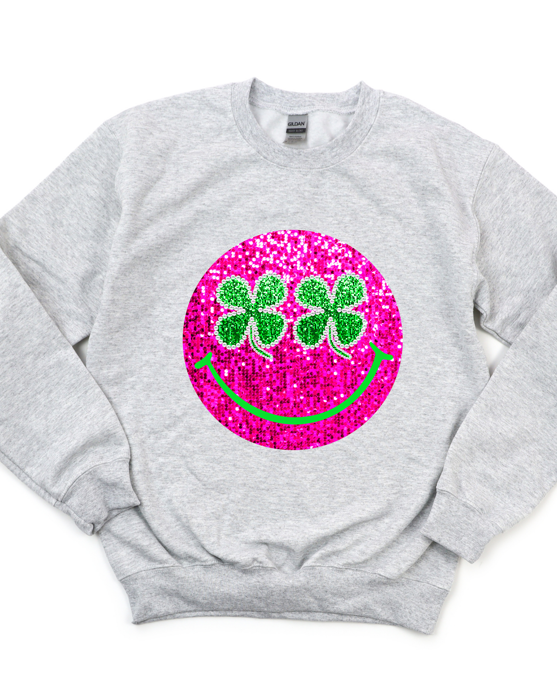 SMILEY FAUX SPARKLE SHAMROCK SWEATSHIRT