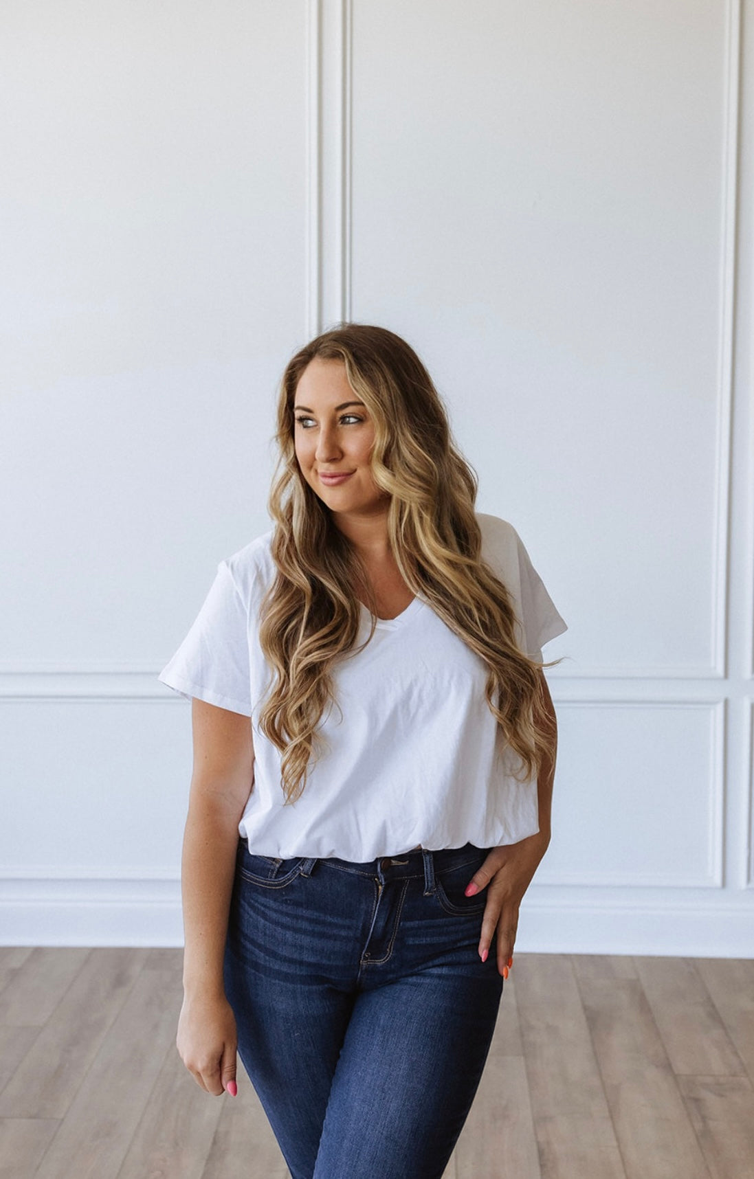 V NECK BUBBLE TEE