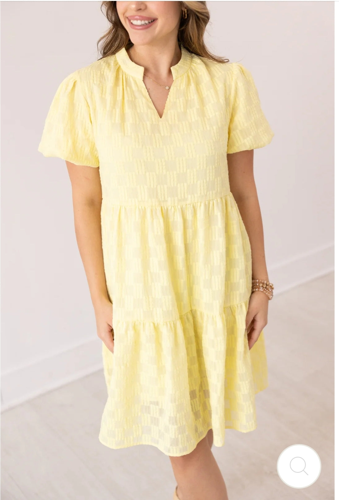 This V-neck checkered dress features a fresh and stylish design, perfect for any occasion. It is lined for added comfort and structure, with no stretch for a tailored fit. The elastic sleeves offer a flattering shape, adding a touch of versatility to the look. The V-neck adds elegance, making it a timeless piece for your wardrobe.